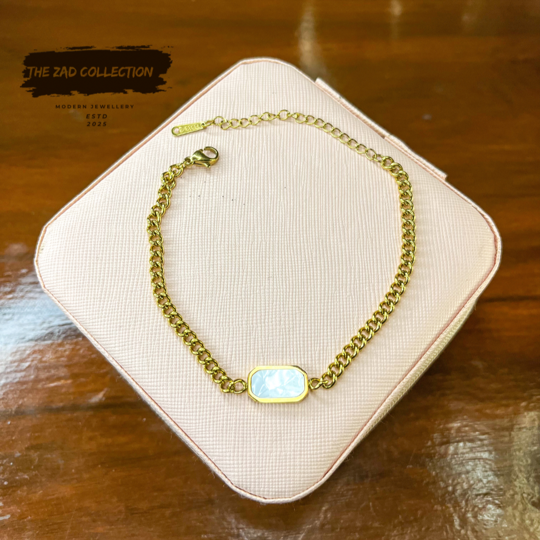 Mother-of-Pearl Bar Bracelet – Gold-Tone Stainless Steel